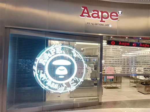 Aape是香港I.T集團(tuán)的知名日系街頭潮牌,智彩科技為廣州天環(huán)廣場(chǎng)Aape門店量身定制透明led顯示屏。